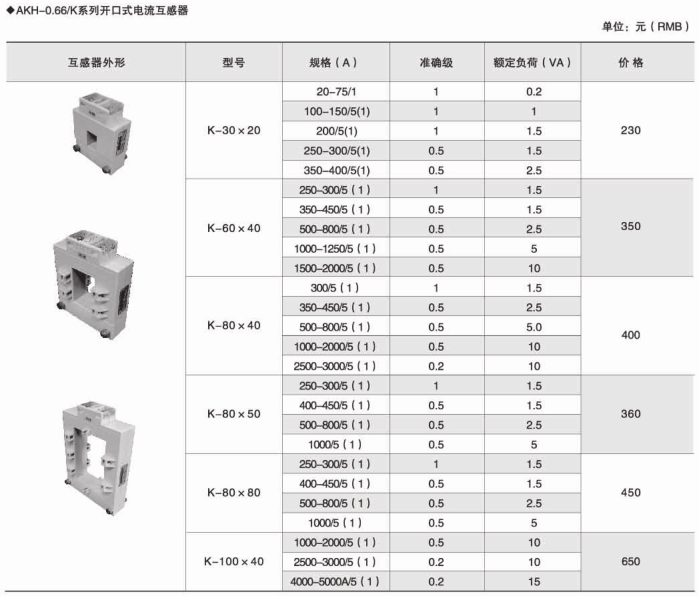 AKH-0.66K系列開口式電流互感器安裝方便,無須拆一次母線,亦可帶電操作,不影響客戶正常用電,可與繼電器保護、測量以及計量裝置配套使用。