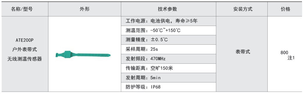 ATE200P戶外表帶捆綁式無線測溫傳感器