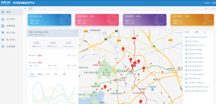 為了彌補(bǔ)現(xiàn)存餐飲行業(yè)在煙油監(jiān)測上的漏洞,同時(shí)便利監(jiān)管部門的監(jiān)察,安科瑞油煙監(jiān)測云平臺應(yīng)運(yùn)而生。油煙監(jiān)測模塊通過2G/4G與云端平臺進(jìn)行通信和數(shù)據(jù)交互,系統(tǒng)能夠?qū)ζ髽I(yè)餐飲設(shè)備的開機(jī)狀態(tài)、運(yùn)行狀態(tài)進(jìn)行監(jiān)控;實(shí)現(xiàn)開機(jī)率監(jiān)測,凈化效率監(jiān)測,設(shè)施停運(yùn)告警,待清洗告警,異常告警等功能;對采集數(shù)據(jù)進(jìn)行統(tǒng)計(jì)分析、排名等統(tǒng)計(jì)功能;較之傳統(tǒng)的靜電監(jiān)測方案,更具安全性和實(shí)效性。