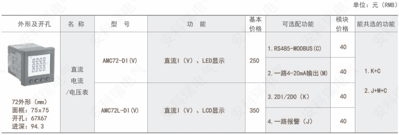 AMC系列直流電流/電壓表