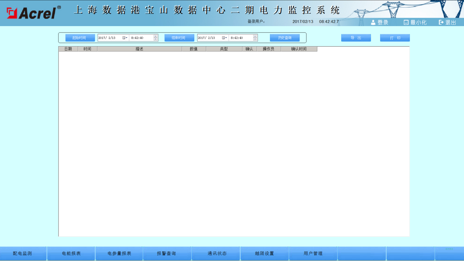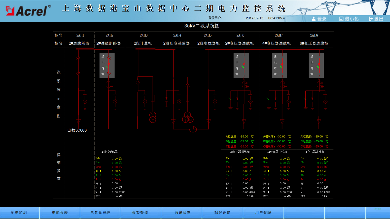 ACREL-2000電力監控系統采用全中文界面,操作簡單方便;運行穩定可靠的特點。點擊相應快捷按鈕即可進入相應的系統功能模塊;系統具有一次系統圖顯示,模擬圖顯示和網絡結構圖顯示;系統具有人機界面友好,顯示數據直觀,方便用戶查閱。