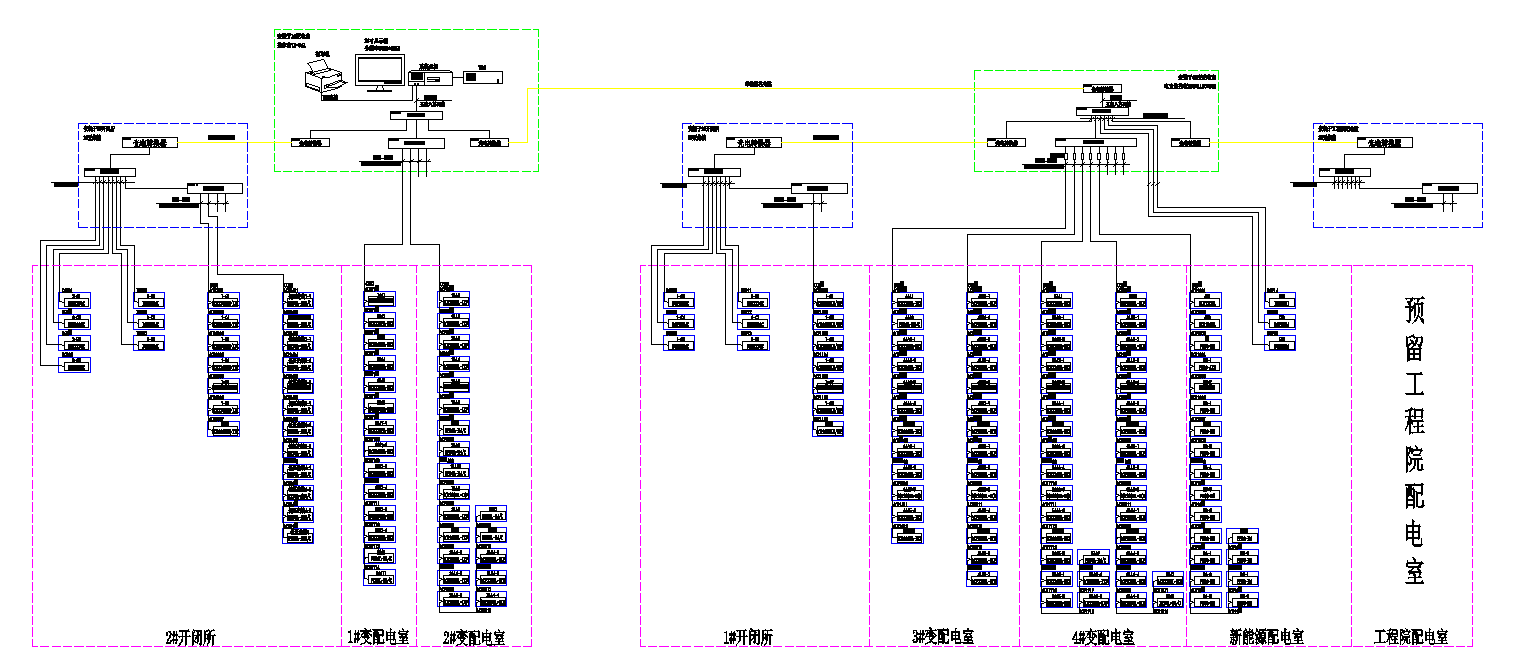 站控管理層:設(shè)有高性能工業(yè)計算機、顯示器、UPS電源、打印機等設(shè)備。監(jiān)控系統(tǒng)安裝在計算機上,集中采集顯示現(xiàn)場設(shè)備運行狀況,以人機交互的形式顯示給用戶。