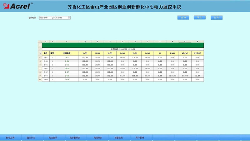 報表具有自由設置查詢時間實現日、月、年的電能統計,數據導出和報表打印等功能。