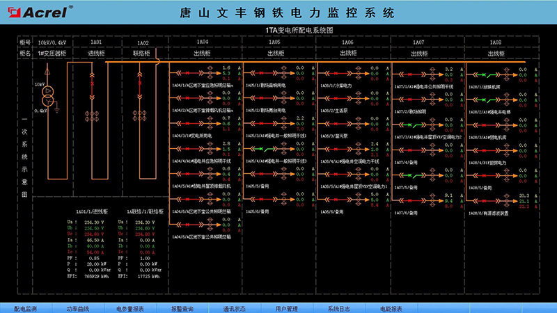 關鍵詞:商業項目;唐山文豐鋼鐵;變電所;智能電力儀表;Acrel-2000;電力監控系統