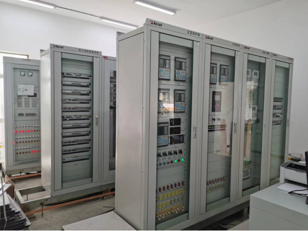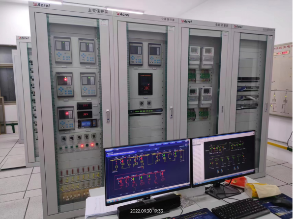 本次工程采用分層分布式綜合自動化系統。計算機監控系統采用安科瑞電氣股份有限公司生產的微機監控系統。本期配置:遠動主機屏1面,公用測控屏1面,電力調度數據網屏1面,#1主變保護測控屏1面,電能計量屏1面,整體化電源系統屏共7面,上述綜合自動化屏在二次設備室內集中布置。