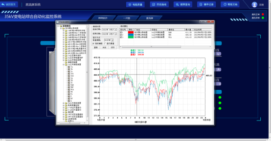 6) 曲線分析功能:可以曲線形式展示實時數據庫和歷史數據庫中的模擬量、電度量數據,以便分析其當前運行狀態及有關歷史趨勢;