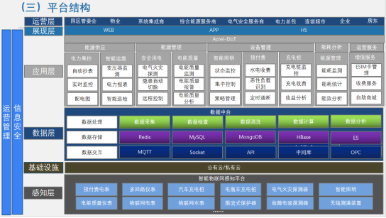 Acrel-EIoT能源物聯(lián)網云平臺采用分層分布式結構,主要由感知層(終端采集設備)、網絡層(通訊管理終端)和平臺層(能源物聯(lián)網云平臺)三個部分組成。