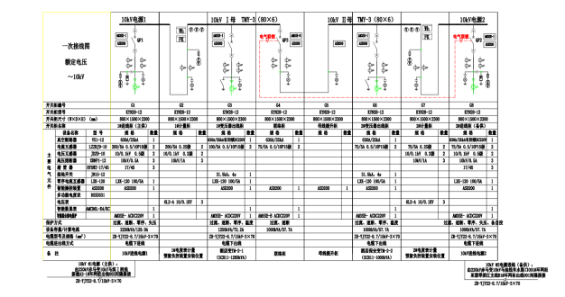 本項(xiàng)目10kV配電工程有2個戶外開關(guān)箱和3個配電房,分別列舉一個戶外開關(guān)箱和1個配電房,上圖方案如下: