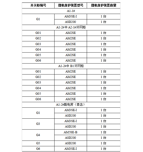 貴陽萬科翡翠濱江A1#樓配電項(xiàng)目所設(shè)微機(jī)保護(hù)及智能操控裝置型號與數(shù)量如下: