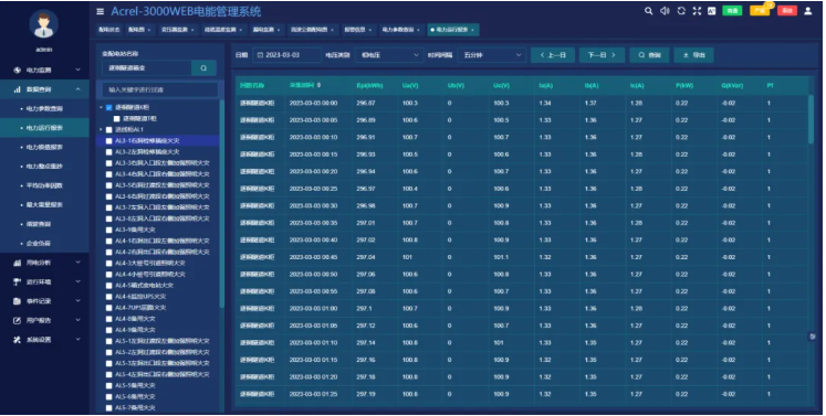 7)運(yùn)行報(bào)表:查詢各回路或設(shè)備時(shí)間的運(yùn)行參數(shù),報(bào)表中顯示電參量信息應(yīng)包括:各相電流、三相電壓、總功率因數(shù)、總有功功率、總無(wú)功功率、正向有功電能等,報(bào)表格式有日?qǐng)?bào)表、月報(bào)表、年報(bào)表等。