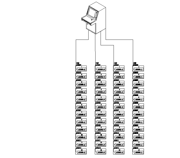 長沙市中心醫院胸科樓電氣火災監控系統現場有48只ARCM200剩余電流式儀表,安裝于該醫院樓層配電箱內。現場儀表采用總線方式接入,將數據上傳至消控中心的Acrel-6000/Q琴臺式電氣火災監控系統。