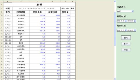 系統(tǒng)采集的有功電度數(shù)據(jù),按照回路名稱的不同,自動生成日報表、月報表和年報表并有報表打印功能,并可對某一回路的某一時間段內(nèi)的用電量進(jìn)行查詢與打印,同時這些報表也能以Excel的格式導(dǎo)出。如圖4所示。