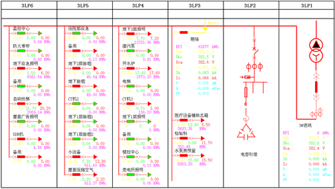 系統(tǒng)提供簡單、易用、良好的用戶使用界面。采用全中文界面,CAD圖形顯示低壓配電系統(tǒng)電氣一次主接線圖,顯示配電系統(tǒng)設(shè)備狀態(tài)及相應(yīng)實(shí)時運(yùn)行參數(shù),畫面定時輪巡切換;畫面實(shí)時動態(tài)刷新;模擬量顯示;開關(guān)量顯示;連續(xù)記錄顯示等。