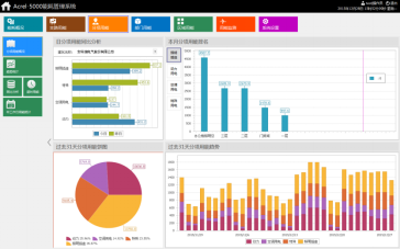 系統可以按照分項進行能耗統計與顯示。其中,日分項用能同比分析圖顯示不同分項的當日與昨日能耗柱狀圖(藍色柱表示今日,綠色柱表示昨日);用能餅圖顯示各分項過去31天的用能占比;堆積圖顯示各分項過去31天的能耗趨勢;分項用能排名圖顯示被選中分項對應能耗值排名前10位的支路。