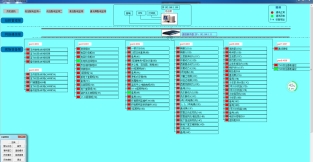 系統通訊結構示意圖,主要顯示系統的組網結構,系統采用分層分布式結構,同時監測間隔層設備的通信狀態。紅色表示通訊正常,綠色表示通訊故障。下圖為變電所通訊狀態示意圖。