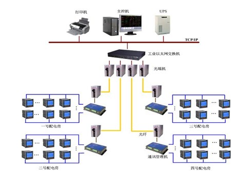 上圖為該項目上的具體應用拓撲圖;Acrel-3000變配電監控系統主要分為3層:站控管理層(工控機、打印機、UPS電源)、通訊管理層(16口通訊管理機)、現場設備層(現場智能裝置)。