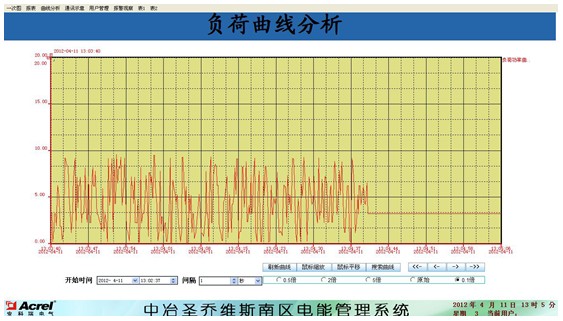5.3趨勢曲線:功率實時趨勢顯示及歷史趨勢查詢功能。選擇回路后,該回路實時趨勢曲線會不斷刷新,選擇“起始時間”可查看該回路歷史趨勢曲線,選擇“時間長度”可查看歷史日、月、年趨勢曲線,能更加直觀反映該回路運行情況。