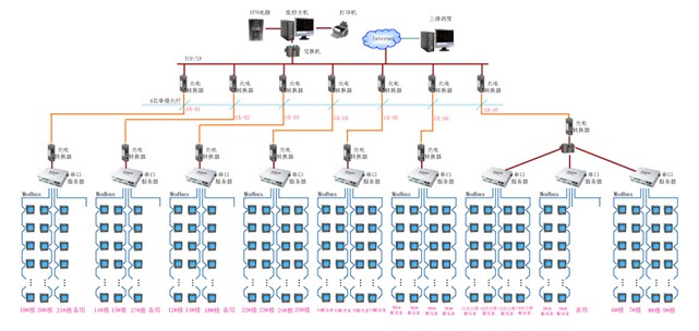 對上海金陵金橋工業園區管理方提出的需求和我們確定的組網方案,站控管理層設備層采購華北工控的工業主機,三星19寸顯示器,SANTAK的UPS;網絡通訊層使用MOXA的NPORT5630-8串口服務器和MS1102的光電轉換器以及3C16470的網絡交換機;現場設備層采用上海安科瑞公司PZ96-E4系列網絡電力儀表,總線鋪設屏蔽雙絞線,以滿足系統組網的要求。
