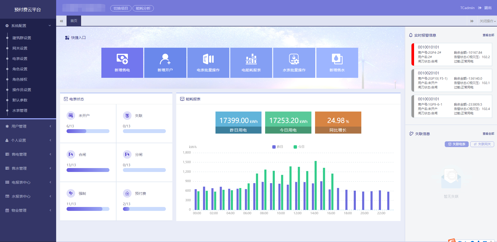 摘要:隨著工業4.0時代的到來及其進程的推進,現代社會各行各業數字信息化進程的加速,各大商業集團和地產集團也不例外地加快了信息化的腳步,在此背景下促進了能源管理信息化系統的飛速發展。其中遠程預付費能源管理系統就是當今社會發展的時代產物之一,安科瑞電氣股份有限公司生產的預付費系列電表(DTSY1352/DDSY1352)及自研的遠程預付費能源管理系統(AcrelCloud3200)應運而生。遠程預付費能源管理系統采用智能遠程預付費電表,采集各商戶實時用電量、剩余電量,通過智能遠程預付費電表進行遠程分合閘控制,實現先售電后用電。該系統采用總線通訊傳至后臺,通過安科瑞(AcrelCloud3200)遠程預付費能源管理系統實現各商戶用電的收費、監控和管理。