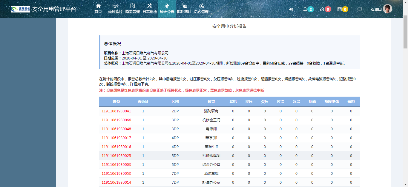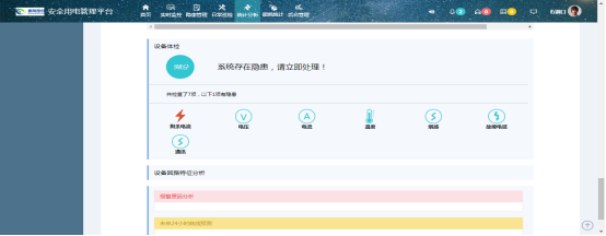 3)數據和隱患分析 數據分析結果可以為用戶提供參考價值,及早發現問題、杜絕隱患。