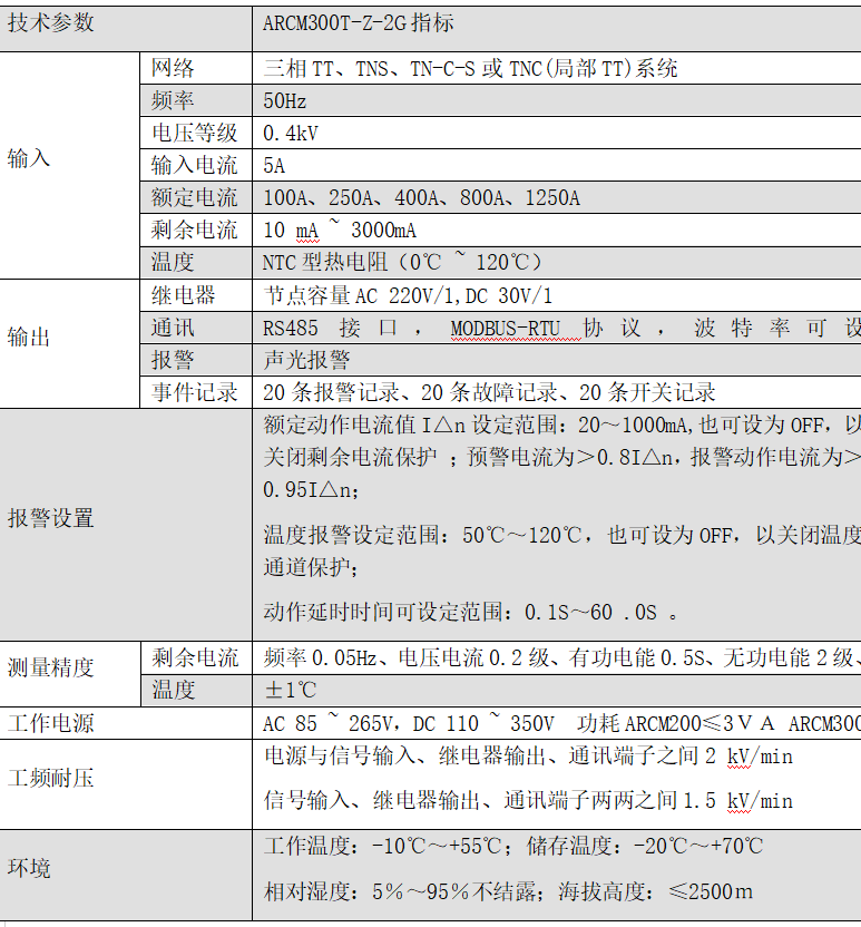測量:實時監測一路剩余電流、四路溫度、電流、電壓、功率、電能等電參量,遙信輸入、遙信輸出、諧波分析、GPRS無線通訊 遙信:4路開關量輸入 遙控:1路繼電器輸出 通訊:RS485/MODBUS-RTU 顯示:液晶