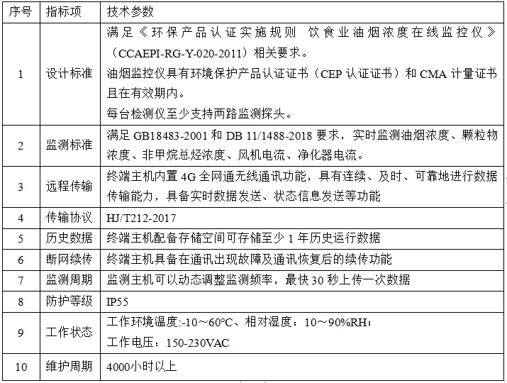2.5、餐飲油煙在線監測(控)終端功能具體要求: