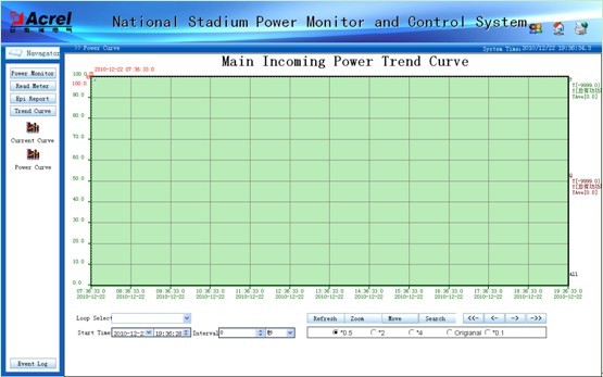 定時采集進線及重要回路電流負荷參量,自動生成運行負荷趨勢曲線的,方便用戶及時了解設備的運行負荷狀況、實時顯示重要回路的電流、功率數據,以及查詢歷史電流、功率數據等。
